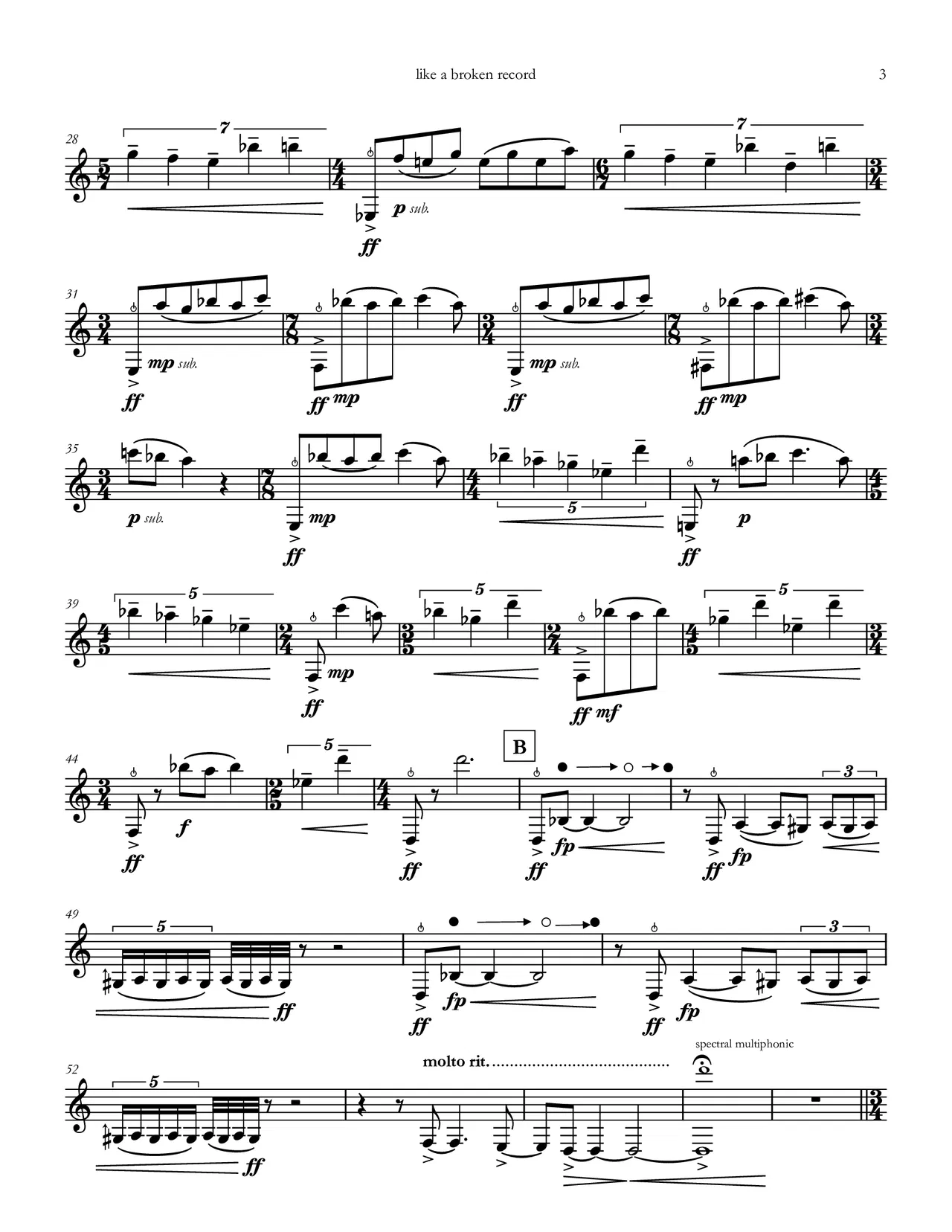 This piece combines one of the hobbies I am most passionate about, collecting vinyl records, and the bass clarinet, an instrument who has been a part of my musical identity since the seventh grade. This piece is inspired by various quality control issues with vinyl records (pops, surface noise, skips, scratches) and utilizes contemporary techniques to represent these defects in the form of slap tongue, air sounds, quarter tones, and spectral multiphonics/glissandi